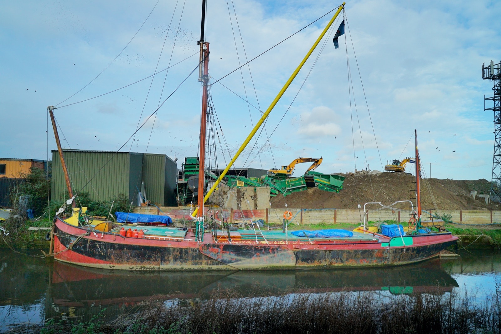 Moored near the tip was the Decima, a steel Thames sailing barge constructed in Southampton in 1899. She is, I learned, a notable “Historic Ship”. A Thames sailing barge is a type of commercial sailing boat once common on the River Thames in London. The flat-bottomed barges with a shallow draught and leeboards, were perfectly adapted to the Thames Estuary, with its shallow waters and narrow tributary rivers. The larger barges were seaworthy vessels, and were the largest sailing vessel to be handled by just two men. They sailed the Medway and Thames in a ponderous way for two hundred years; then in the 1860s a series of barge races were started, and the barges’ design improved as vessels were built with better lines in order to win. The Thames barge races are the world’s second oldest sailing competition, second to the America’s Cup. Thirty barges were part of the fleet of ‘Little Ships’ that rescued soldiers of the retreating British Expeditionary Force from the beaches of Dunkerque. The flat-bottomed barges could reach the beaches, and take off the troops, ferrying them to the larger vessels waiting off shore. These would make the Channel crossing. Twelve barges were sunk, but eighteen vessels returned.
