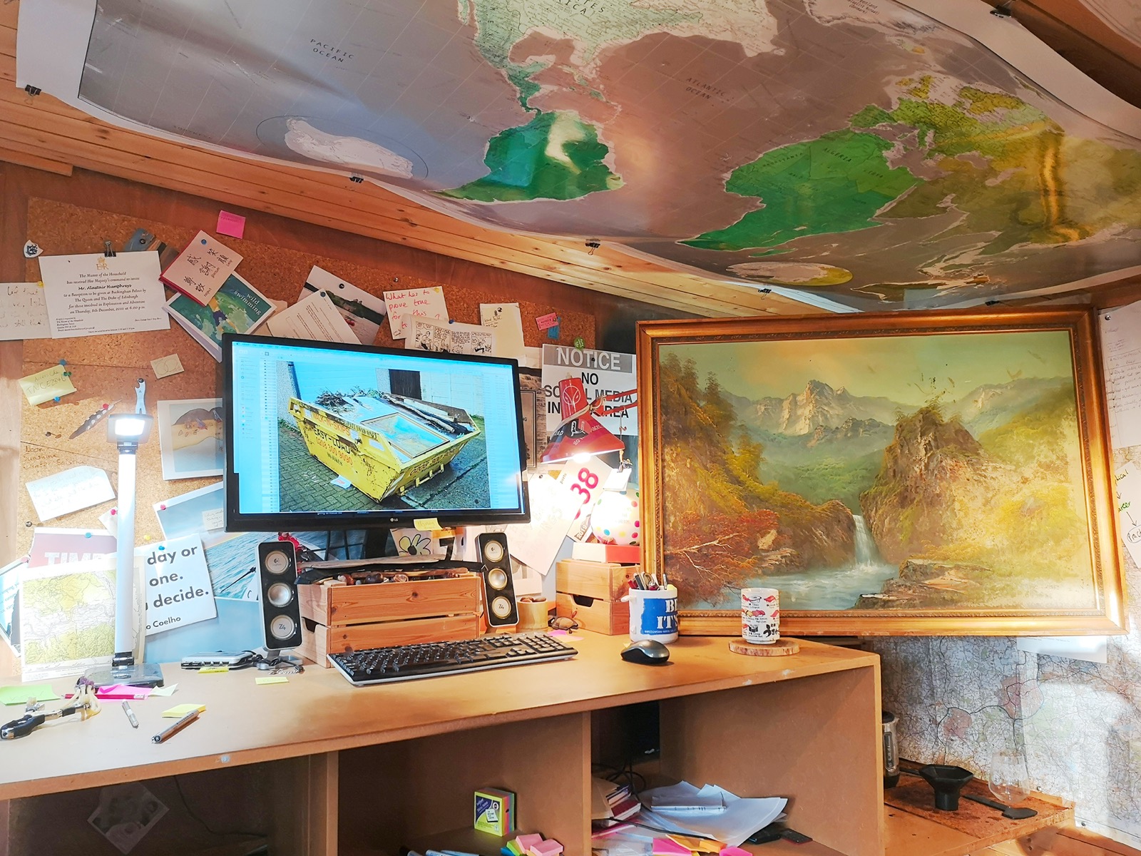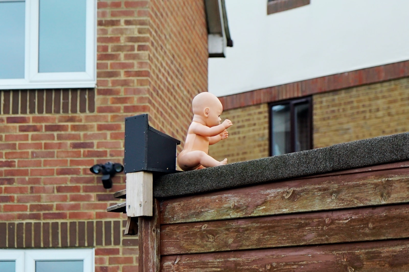 Under the railway (over the creek) I scampered across the dual carriageway and back into streets of houses. A sign cable-tied to a fence offered a reward for a missing grey parrot (microchipped). A large billboard advertised a ministry where young and seasoned professionals are groomed to become urban missionaries in their careers and businesses. They display unique dimensions of divine excellency in the very heart of the marketplace. Another small sign directed “Danny killick funeral flowers this way”. And a naked plastic doll sat, arms outstretched, on the roof of a garden shed. I lifted the abandoned painting out of the skip and headed home for some lunch.