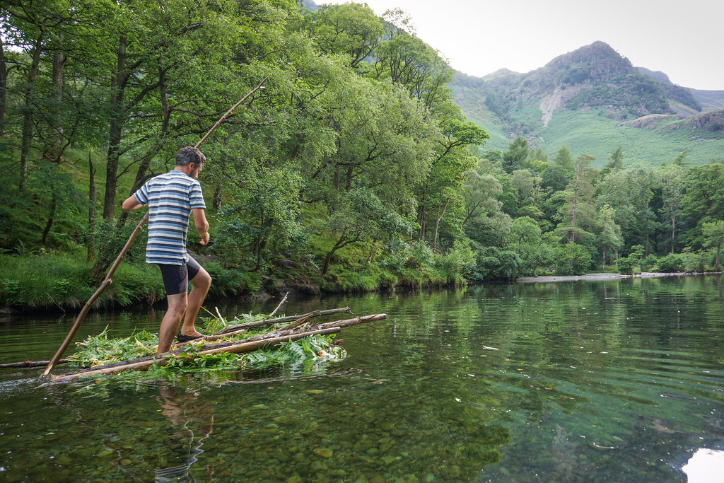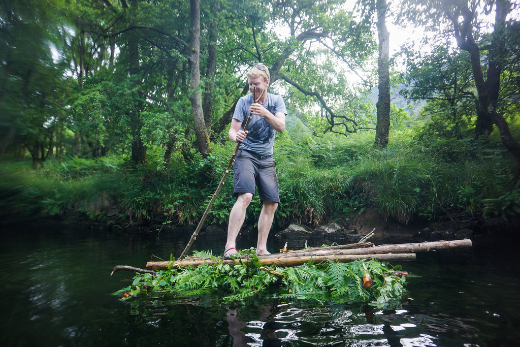 Tom and I paid homage to Millican Dalton by sleeping in the cave he used to live in, building a raft of our own and paddling it down the River Derwent.