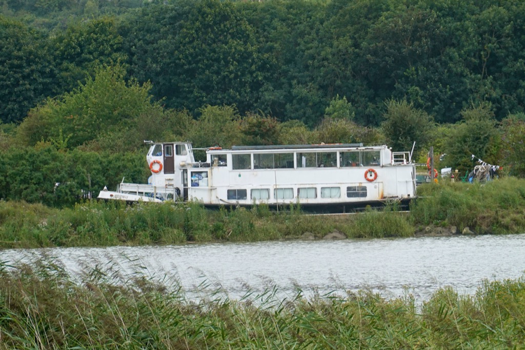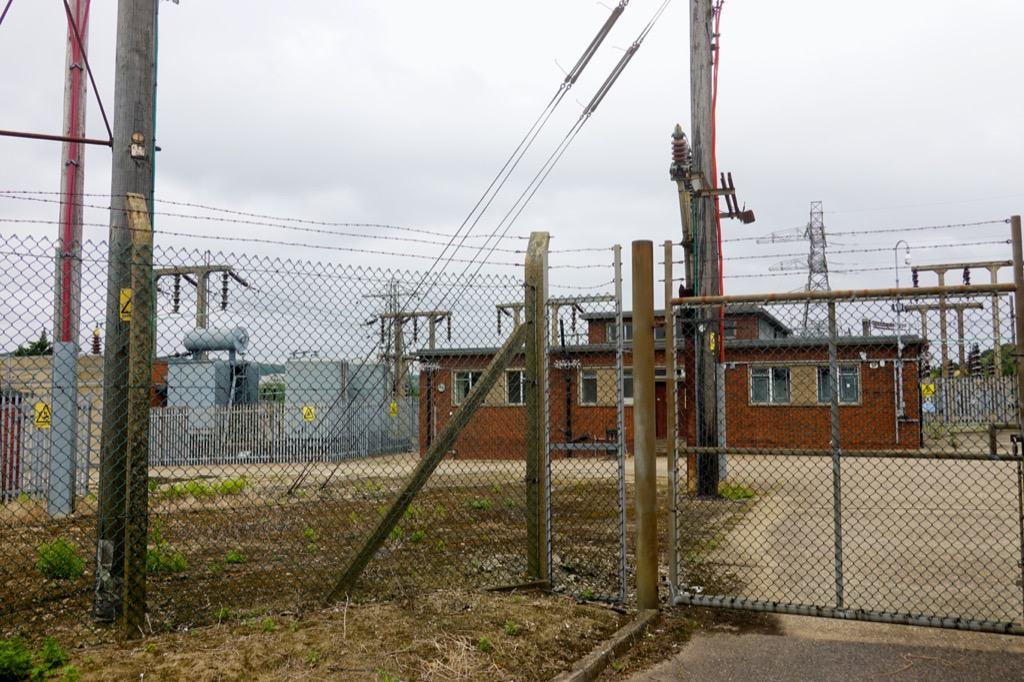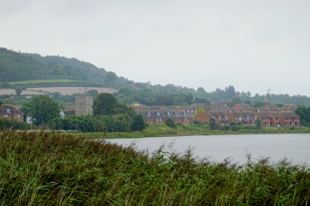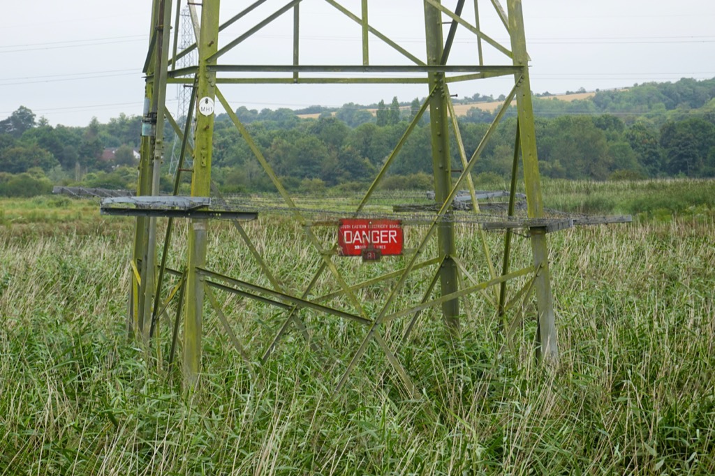 Beyond the village the river was lapping gently, muddy and peaceful this morning at high tide. I listened to the susurration of the wind whispering in the reeds, then questioned myself whether susurration was even a word. (Turns out I was right, it comes from the Latin word for ‘whisper’.) I followed the river downstream to the edge of my grid square, past a tribute to the lime kiln workers who used to work here, past the site of the cement factory that brought wealth to the area, and past where the ferry ran for hundreds of years until 1963. You could take your bike on the ferry but it cost 1/2p extra! I passed a smelly sewage works, past a quiet bench where I watched the water for a while, past pylons in the reed beds wrapped in barbed wire and warning would-be climbers of the 33,000 Volts fizzing through those cables over the reed beds.