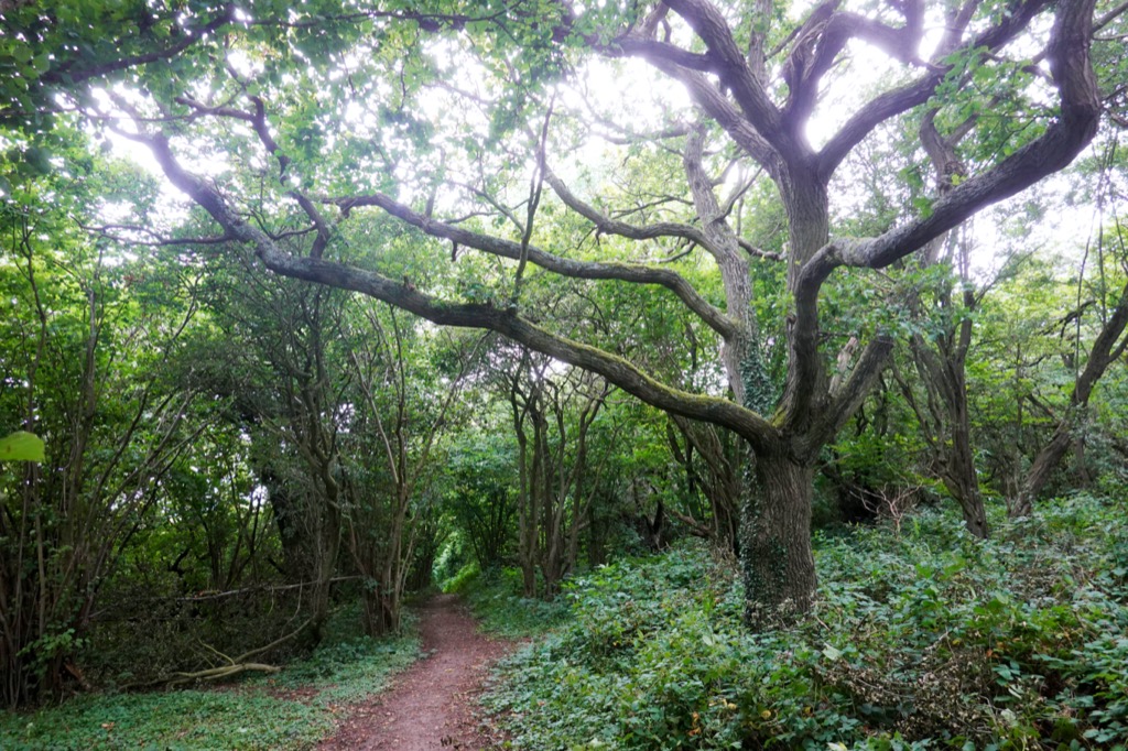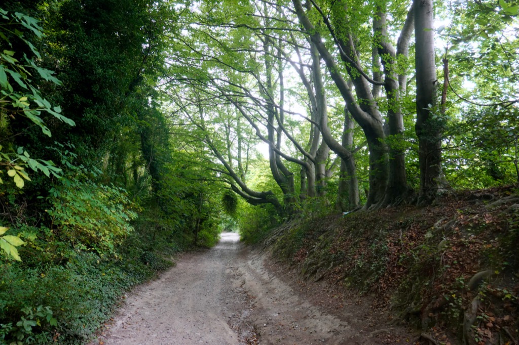 Riding a stony bridleway into a wood I made sure to enjoy the lush green trees overhead, for in just a few short weeks autumn will be here and the leaves will be falling. The path became a beautiful holloway for a short distance, with beech trees arching overhead and the tangle of roots visible on the elevated track sides. A nuthatch scurried up and down one of the trunks, calling ‘dwip, dwip’ as it searched for food.