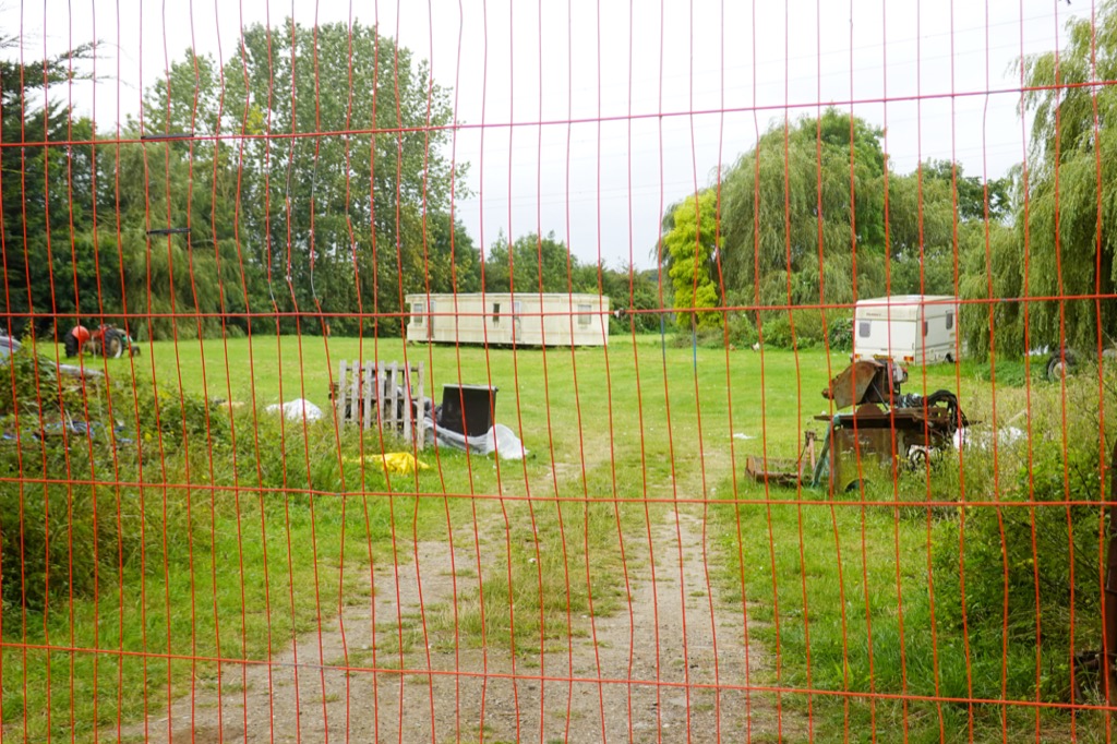 I turned away from the river and began climbing the long gentle valley side. Today’s grid square was a rare foray for me onto the far side of the river and it felt like a new land for me. I was keen to gain as much elevation as possible (not much) to afford the best possible view over the landscape of my map from this novel perspective. I pedalled past an electricity substation, past the old school, past a smelly cattery and boarding kennels and up a narrow lane between two tight hedges.