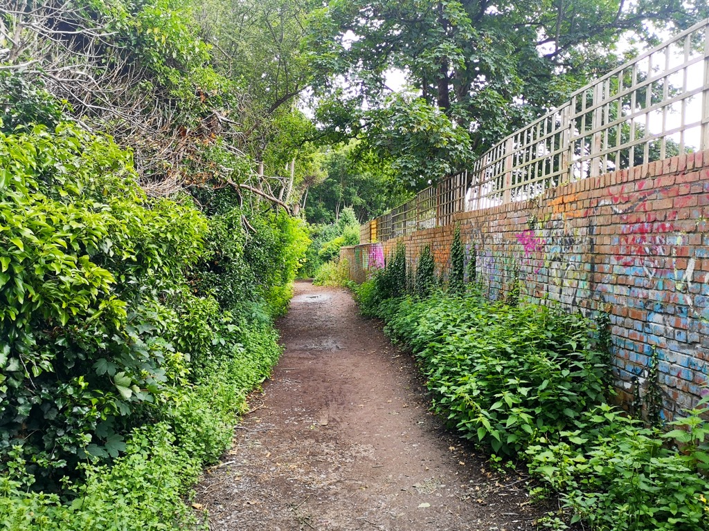 I might not have learned about the useful footpath cutting down behind the backs of houses, glass-strewn and graffiti-ed, but very convenient. The cheerful wall mural saying HAKUNA MATATA in colourful letters by the overflowing bin and fly-tipped TV. The barges on the river where sky and water meet, marooned on estuary mud for a few hours until the tide rose once again. A very young bride and groom posing for a wedding photographer outside their front door, startled by my joyful cheer to them. So many things I would not have seen or felt had my route taken me another way. Snippets of Larkin’s poem The Whitsun Weddings kept popping into my head; his observant, curious musings on the sheer multiplicity of our world.