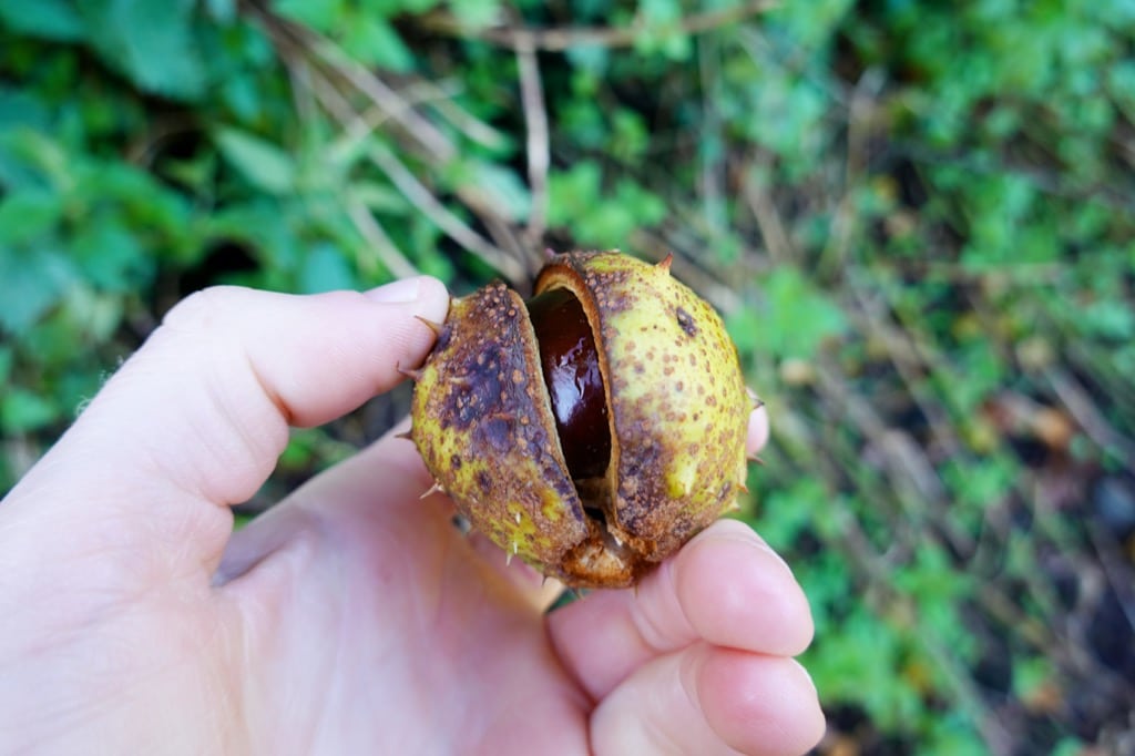 As autumn has approached there has been one thing I have been particularly looking forward to, and today it arrived: conkers. Horse chestnuts, with their mahogany-bright conkers, are the very essence of autumn. Horse chestnut is native to the Balkan Peninsula. It was first introduced to the UK from Turkey in the late 16th century and widely planted. Though rarely found in woodland, it is a common sight in parks, gardens, streets and on village greens.