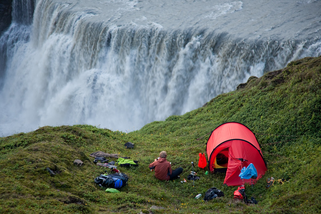 That night I felt a sense of deep contentment such as I have not really felt in the last couple of years. I lay on springy green moss outside the tent and looked down at the rainbows of mist drifting from the waterfall. The trip was turning out to be all I could have hoped for. Beautiful, deserted, challenging, daunting, and with very amusing company. I’mm a lucky man. One day like this a year’d see me right.