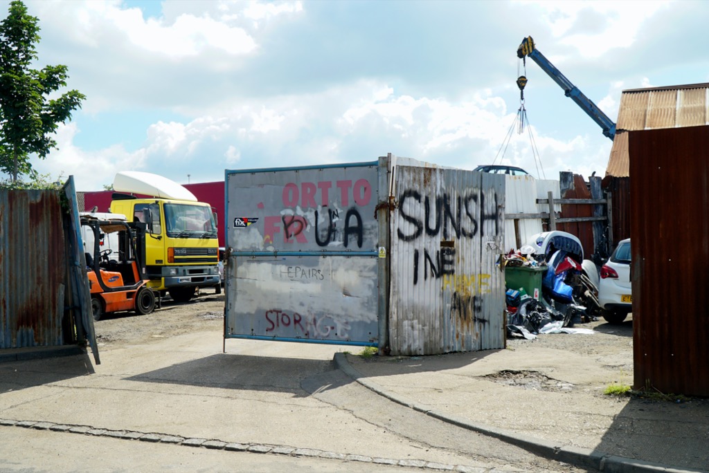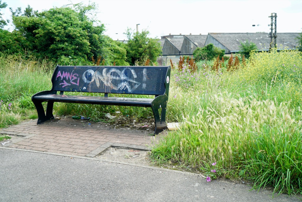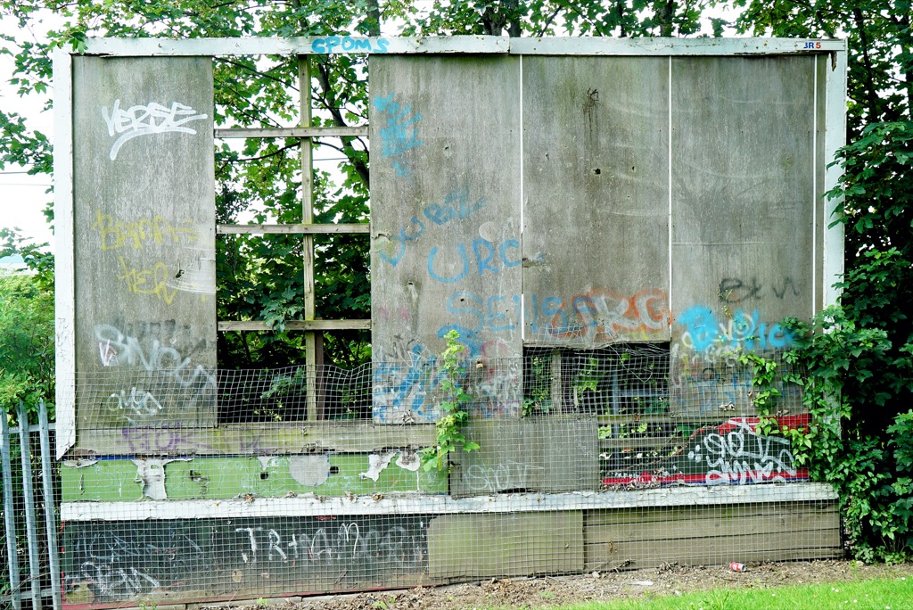 I pedalled around the streets of distinctive flat-roofed terrace houses and blocks of flats, many with paint peeling and a feeling of a marginalised community. But England flags were flying in the sunshine, with an air of optimism in the lead-up to the Euros final. Beside the railway was a row of scrap metal dealers, their businesses protected behind high walls and steel fences. One had its name sprayed crudely in big letters along a corrugated fence, whilst its neighbour had a large sign saying, ‘recycling the past for a better future’.