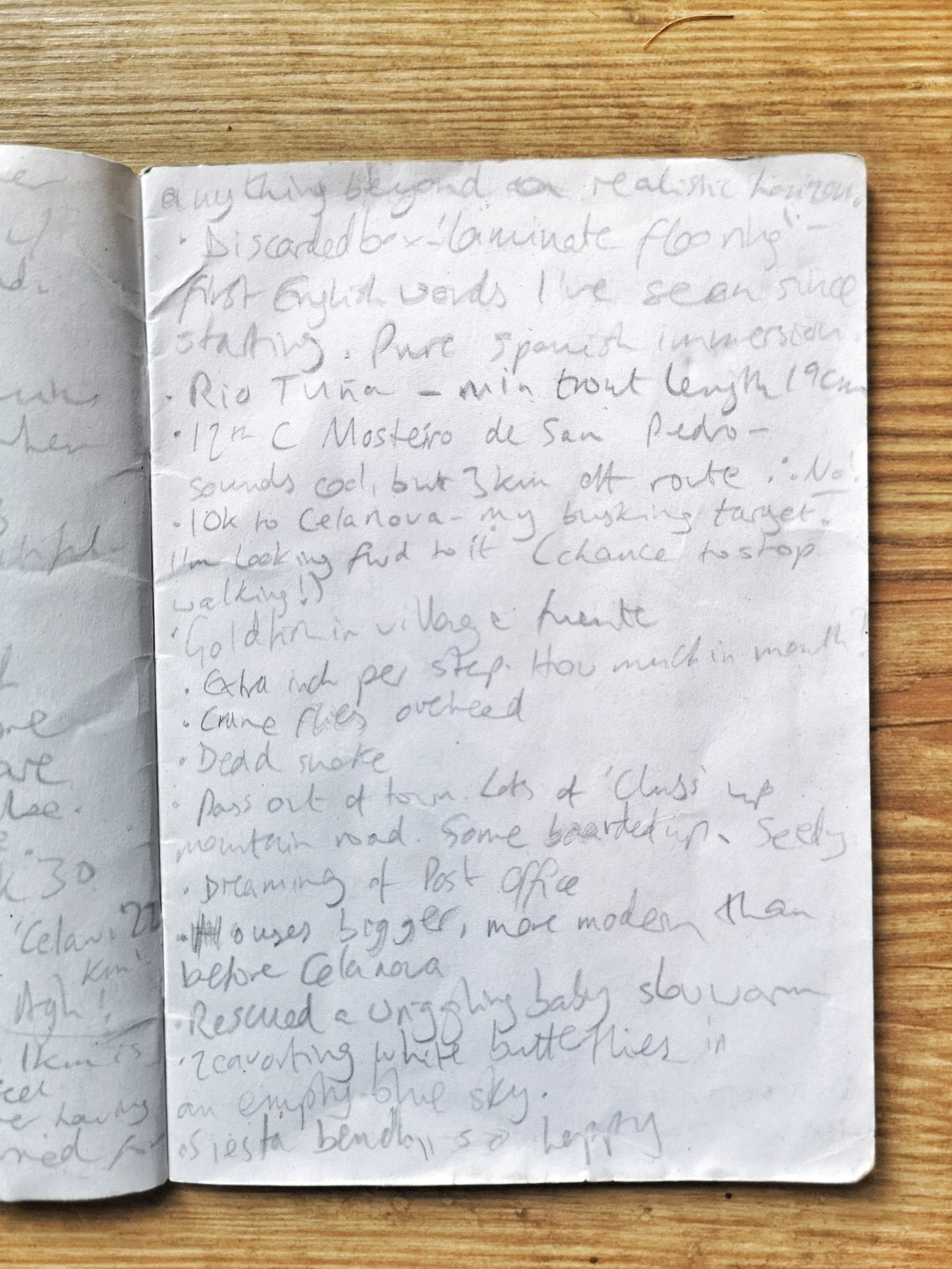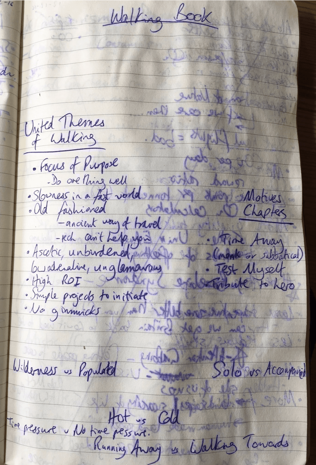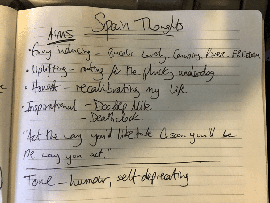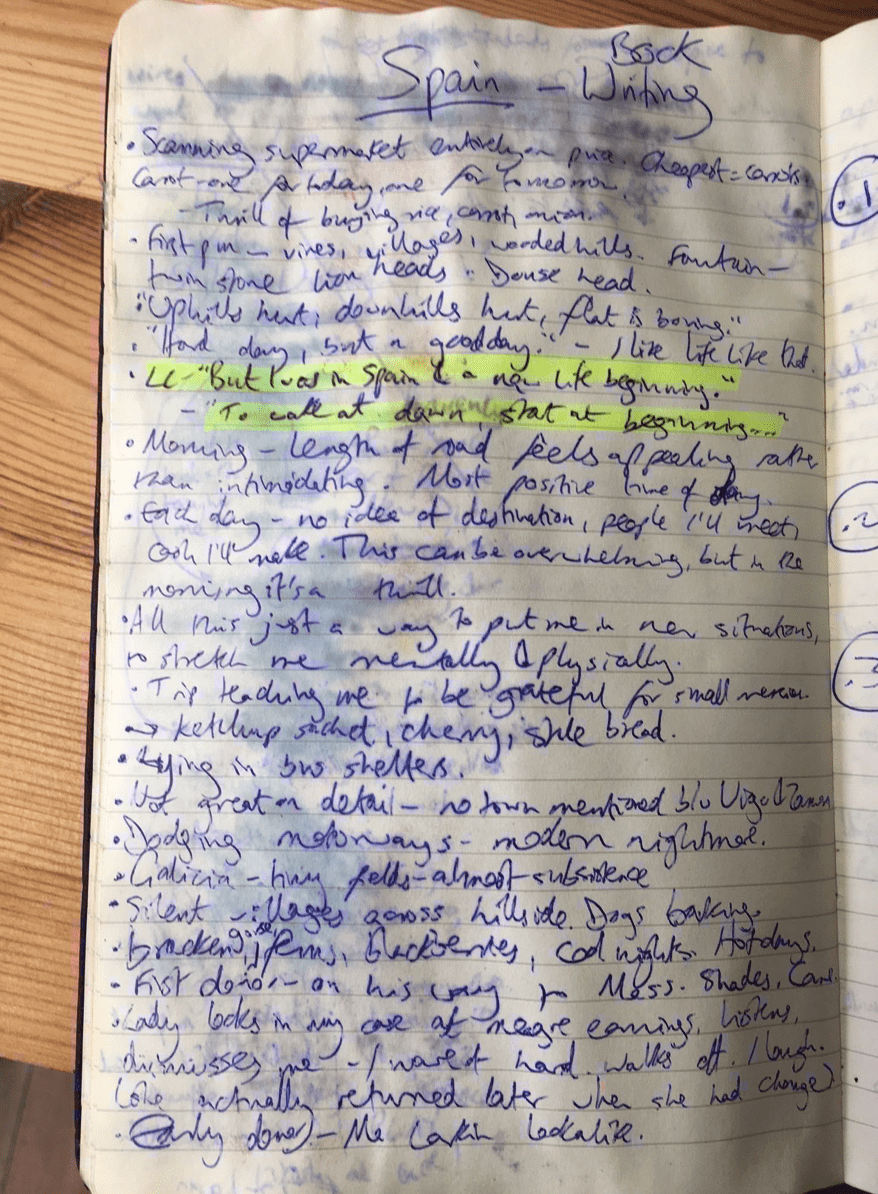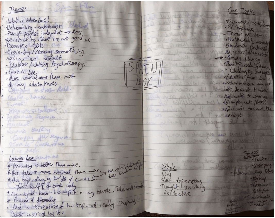 Start brain-storming ideas for the story and structure. (This often happens up hills for me. My notebooks often get wet.)