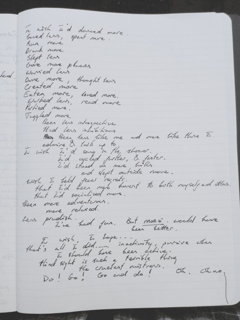 Wish I held fewer regrets. That I’d been more honest to both myself and others.