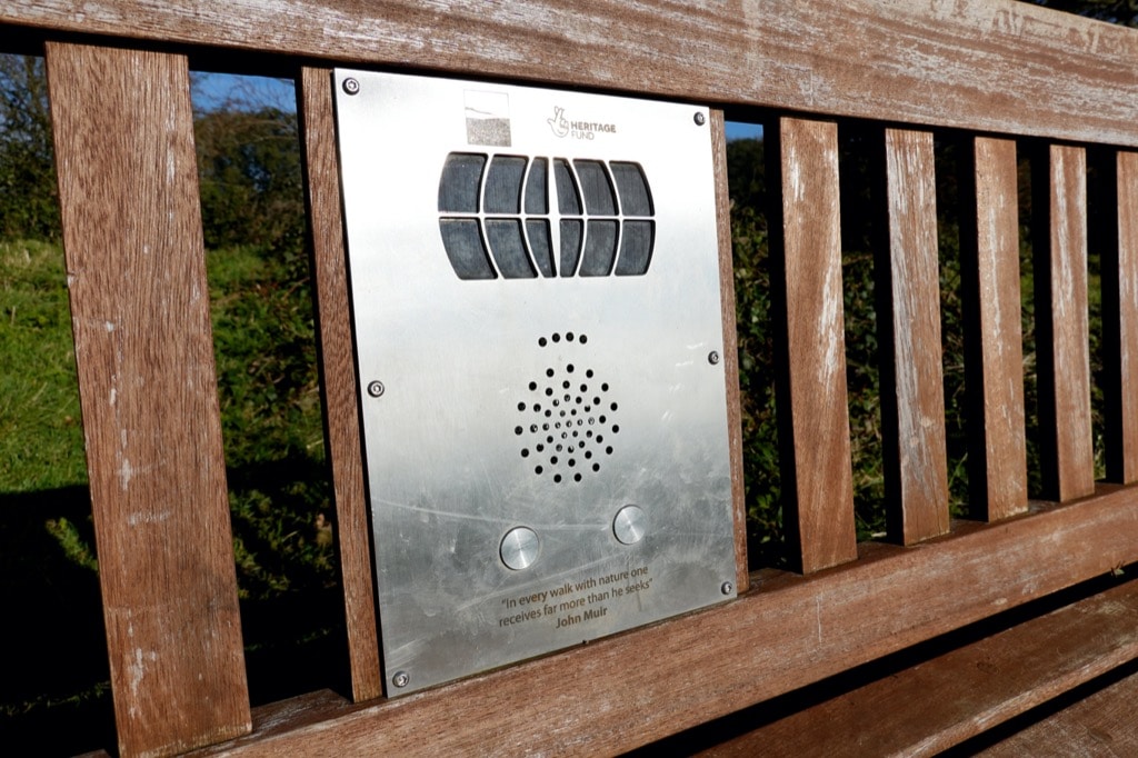 It was a bright morning, with warm sunshine and a cold breeze. It is, perhaps, that day defined in The Meaning of Liff as ‘Brithdir – The first day of the winter on which your breath condenses in the air.’ I climbed a steep grassy hillside to enjoy the misty, pale view southwards over miles of woodland and villages. I sat on a bench and poured a cup of coffee from my flask. A plaque on the bench commemorated an old man ‘who lived in this village and found peace in these hills.’ Pinned to the fence was a photograph of a young man who died aged just 21. I Googled his name, but unusually could find no online information about him. This is so unusual these days. Indeed the very searchability of everything has given so much to this Single Map project. I have learned much by wandering around my map. But I have also discovered so many things that interest me through the Googling prompted by each outing. I have gleaned much more from the experience by following my curiosity around the internet.