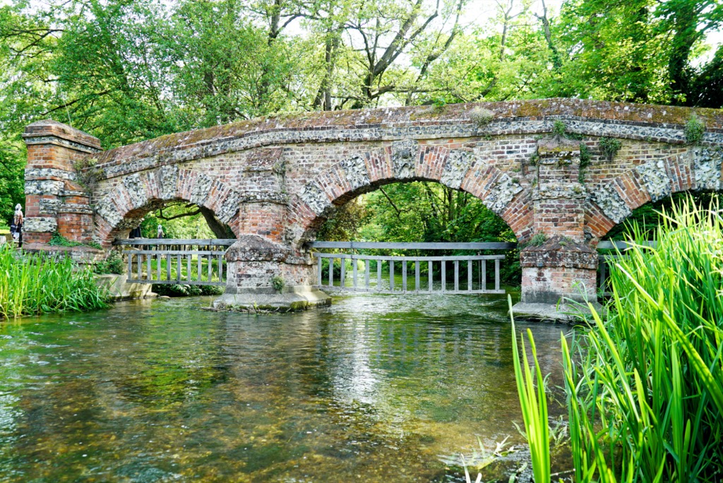 The sun shone, I had dug out a pair of shorts (my legs shone alabaster white) and the air was warm and bright. How I felt today made me aware of how I have not been feeling for so long, throughout the drawn-out long winter and the year of lockdown and homeschooling. Today I felt alert, enthusiastic and able to look to the future with ideas and energy. On top of that, a chalk stream kissed the corner of today’s grid square. I began there, with the banks flushed green with plants and overhanging trees and the clear, cold water burbling cheerfully. I love small pretty streams and it is a shame that this is the only one on my map. An old arched brick bridge spanned the water (rebuilt in 1773), with brown trout nosing gently into the current. They were free to swim; alas a ‘Private Property’ sign chained across the river prohibited curious explorers from enjoying the ancient stream. At least the riverside pub’s garden looked welcoming: a shame though that it was still too early to be open.