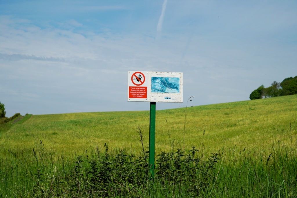 Away from the motorway I headed up a footpath on a hillside meadow (complete with signpost showing a shouting man with an outstretched arm, palm up to say ‘no’ and a warning ‘This is not a footpath. Beyond this point is trespassing please [sic] turn around and remain on a footpath.) The meadow had already received its first mow of the summer, the hay taken off to be dried and stored for animal fodder. Farmers try to harvest hay at the point when the seed heads are not quite ripe and the leaf is at its maximum when the grass is mowed in the field. The cut material is allowed to dry so that the bulk of the moisture is removed but the leafy material is still robust enough to be picked up from the ground by machinery and processed into storage in bales, stacks or pits.