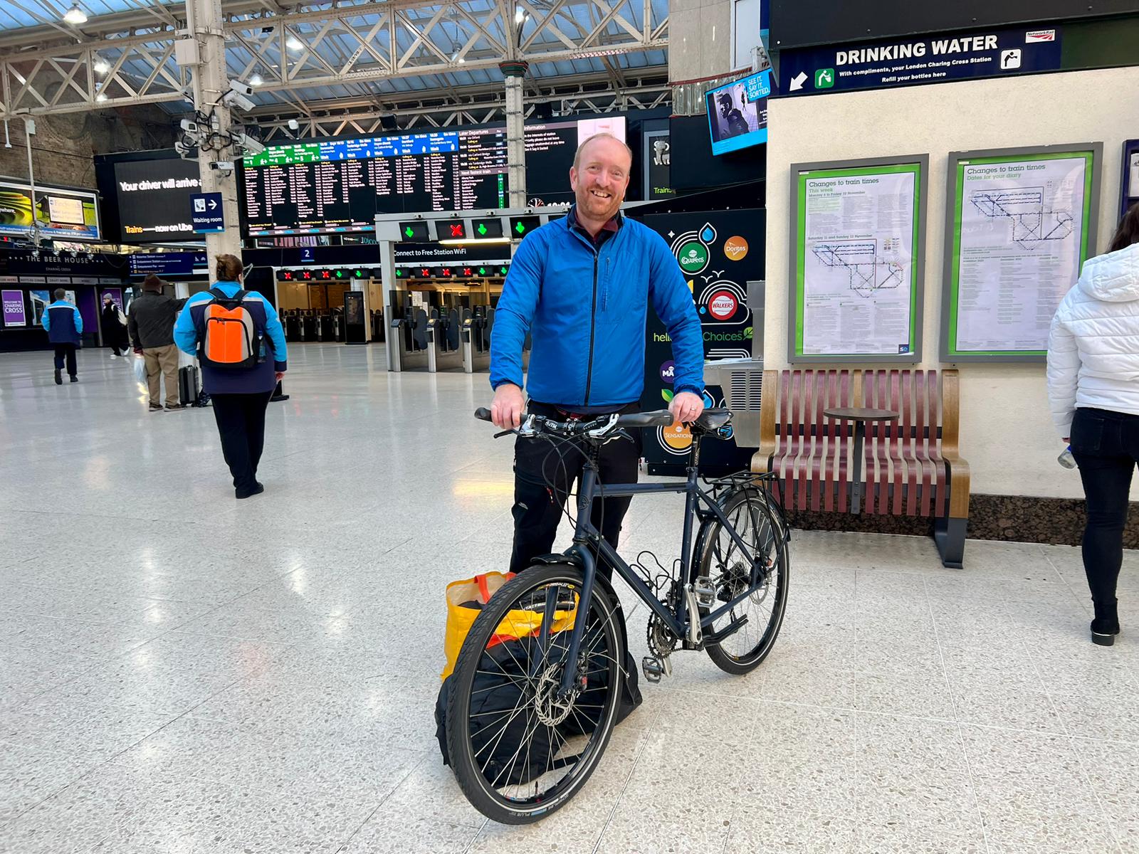 I set off with Alaska, but not until my photographer friend Soren, who came along for the day, could get some photos. Posing outside the station did make me feel like I was about to embark on an epic adventure, rather than just riding to Somerset, where I found out Lydia is based. My reaction was ‘great, that’s a lovely part of the world, although into the prevailing wind.’