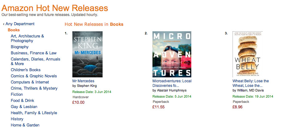 My book Microadventures, reached #12 on the chart for all books sold on Amazon UK.