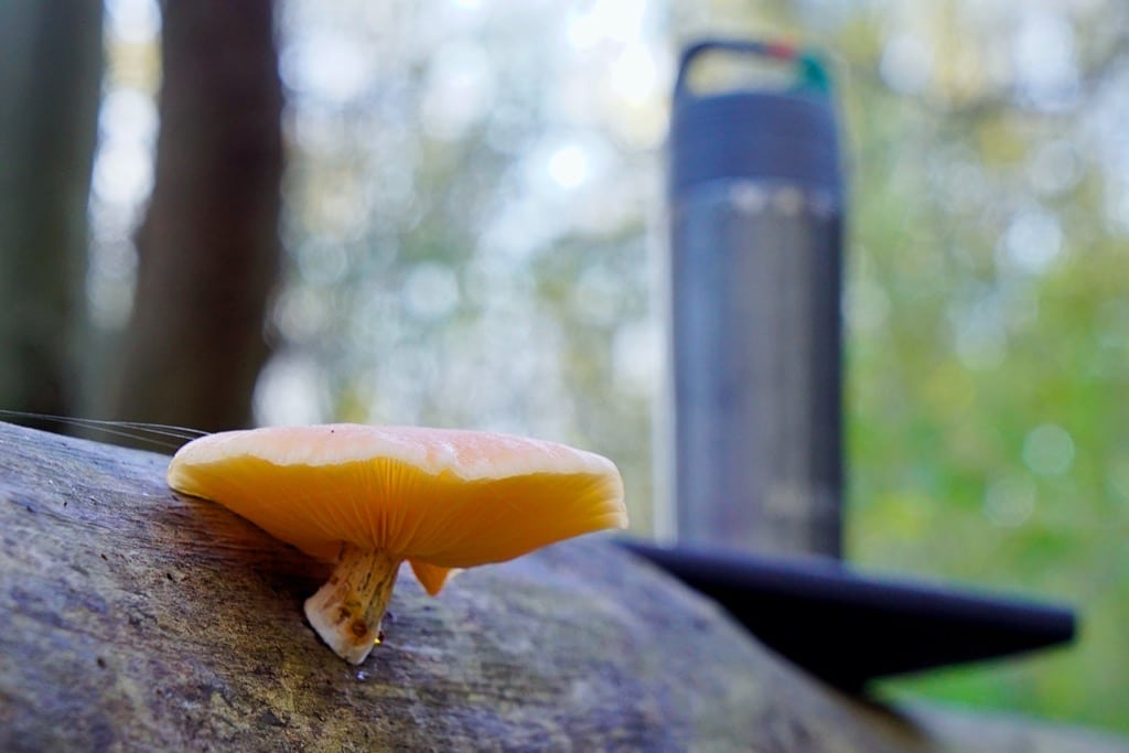 I’m sharing my log (but not my coffee) with a gloriously weird, slimy, beautiful fungus. A ‘Wrinkled Peach’, I learn from my Seek app. It likes to grow on dead and rotting elm so after the Dutch elm disease outbreak they became quite common. Now it is fairly rare although it will grow on other hardwoods. I vaguely remember Dutch elm disease from my childhood. This now infamous tree disease has killed millions of elm trees in the UK over the last 40 years. It’s changed parts of our landscape forever and it’s still spreading north. It is mirrored more recently with Ash dieback, a devastating tree disease that has the potential to kill up to 95% of ash trees across the UK. At an estimated cost of billions, the effects will be staggering. It will change the UK landscape forever and threaten many species which rely on ash. This makes me really sad! (If you believe that you have identified Ash Dieback in ash trees, please report it immediately to the appropriate authority DEFRA.)