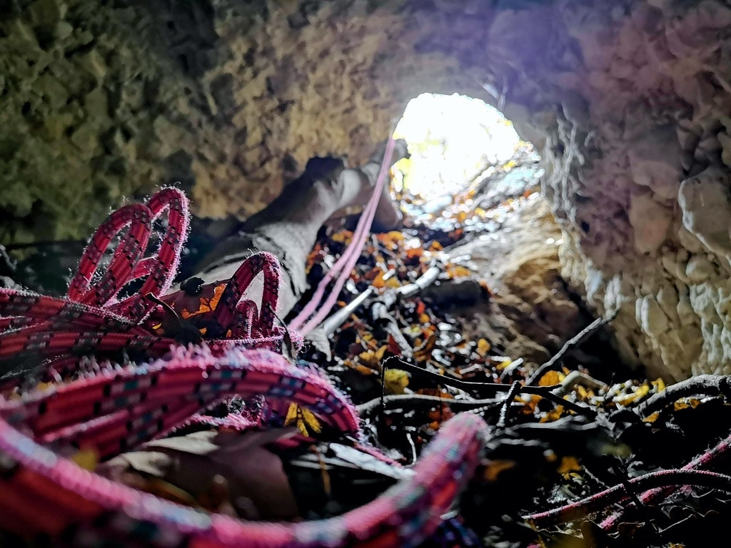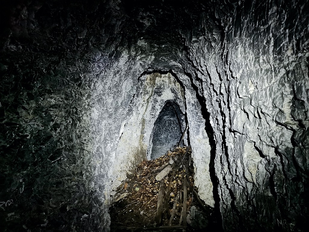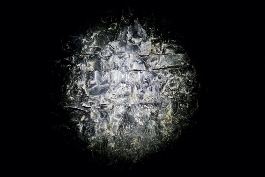 I texted a friend with my what3words location in case I did not reappear, then leaned back into learning something new. A denehole is an underground structure consisting of a number of small chalk caves entered by a vertical shaft. The chalk uplands of this area once contained many hundreds, if not thousands, of deneholes of various types. Many theories were put forward to explain why these structures were excavated, varying from Druids’ temples, flint mines and ancient hiding places to elaborate animal traps. Subsequent investigation and research confirms that deneholes are no more than small chalk mines. The vast majority were sunk to obtain an unpolluted supply of chalk to spread on the surrounding fields as a fertiliser. The method had much to recommend it as a small shaft at the edge of a field would not interfere with farming operations and could easily be blocked when mining ceased. In 1225 Henry III gave every man the right to sink a marl pit on his own land. Spreading chalk on the fields was a common practice in the Middle Ages. Pliny the Elder wrote about British chalk extraction in A.D. 70 and archaeological evidence shows that at least some of the deneholes were being exploited during prehistory. Casts taken of some of the pick-holes near the roof show that, in all probability, they were made by bone or horn picks.