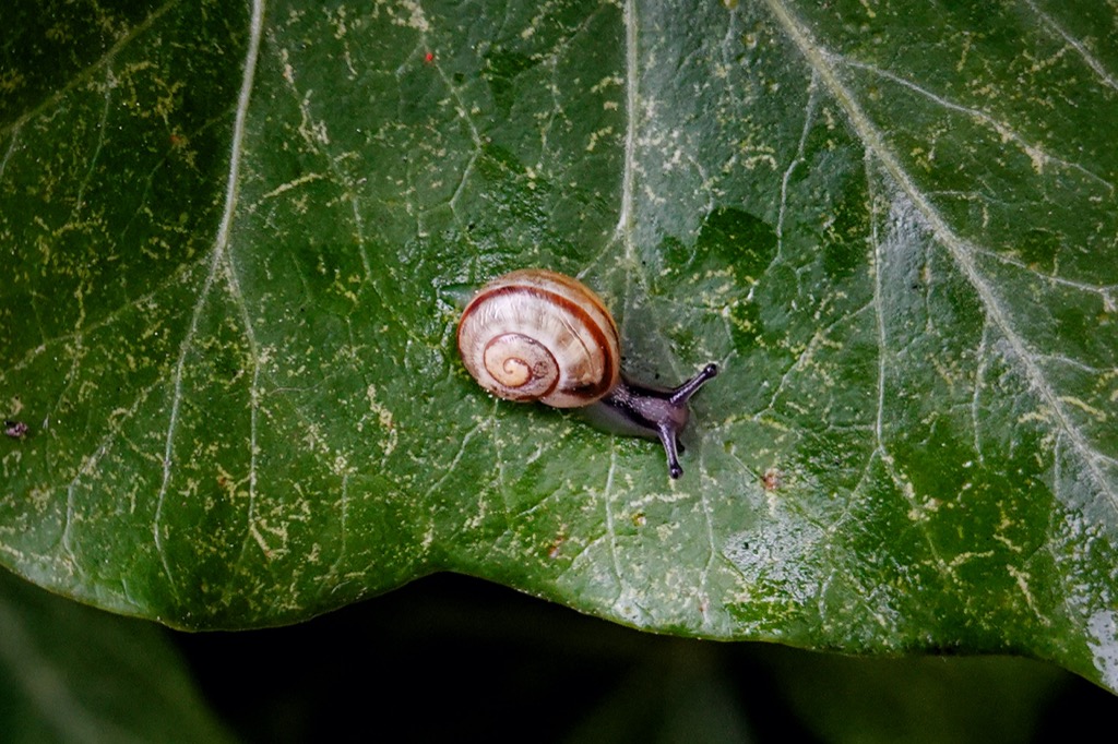 A wren let loose with a burst of its staccato song. My bikes wheels crunched over hundreds of prickly balls of sweet chestnut nuts. I paused on a narrow bridge to watch a train rattle slowly beneath me and peered to look more closely at a small Helicina snail. There are around 120 species scattered across the UK, from the Isles of Scilly to the Highlands of Scotland, including hothouse aliens that are found only in botanic gardens and greenhouses, such as Kaliella barrackporensis in Cornwall’s Eden project. They range in size from the tiny Punctum pygmaeum at 1mm wide, up to the golf-ball sized Helix pomatia, originally introduced to the UK by the Romans.