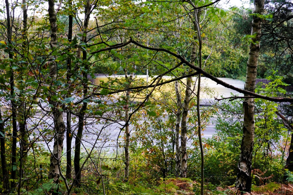 I enjoy being close to motorways on foot. I like the size, the noise, the power, the speed, the sense that this place is very much not designed with me – a pink, squashy, slow little pedestrian – in mind. I like crossing them on pedestrian footbridges, and I enjoy the colossal concrete weight of tunnels under motorways. As a bonus the chestnut woods that the tunnel took me to were flush against the motorway, so I could peer through the branches at the lorries hammering past just metres away.