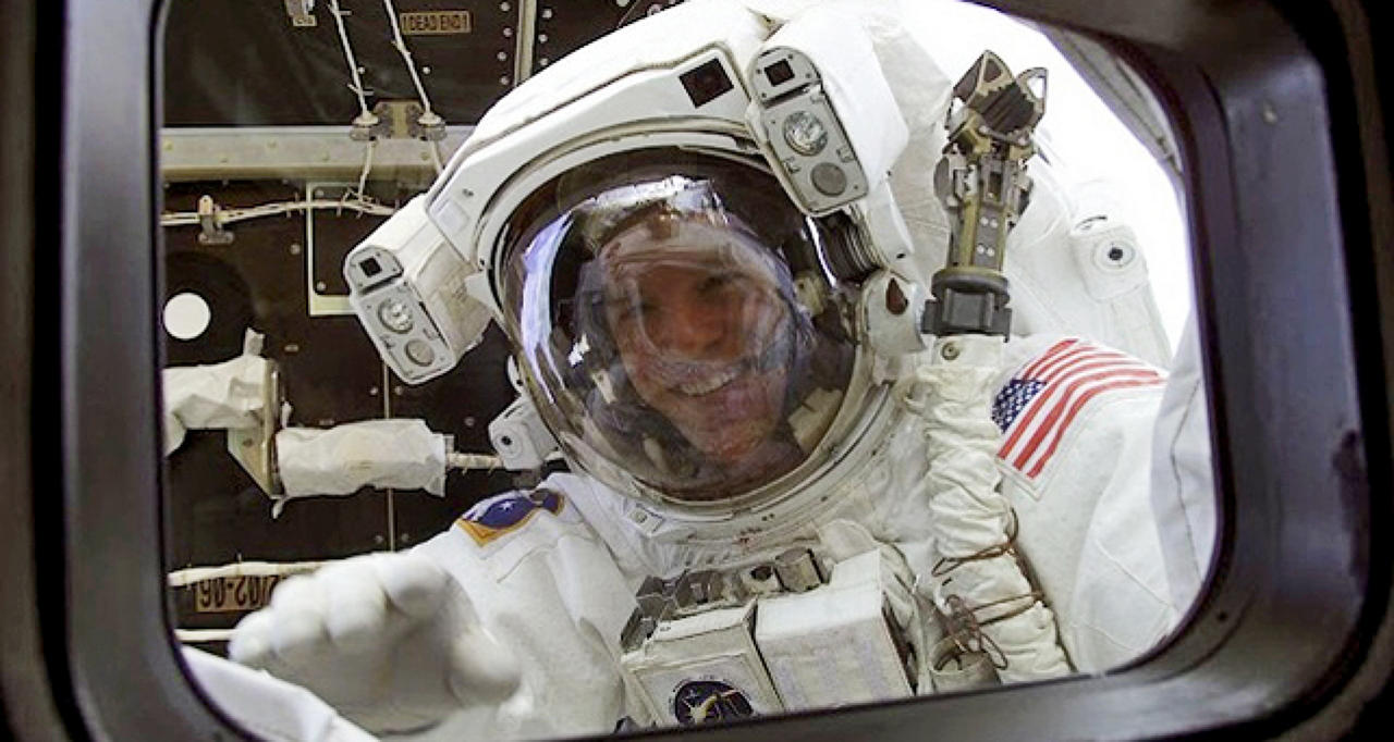 So you know the launch is a very high-threat environment. But once you get up into space, you’re floating around. You’re wearing clothes like we’re wearing here today, just in short-sleeves. You don’t really appreciate the fact that on the other side of that thin aluminum hull is the vacuum of space. So you feel very comfortable and secure.